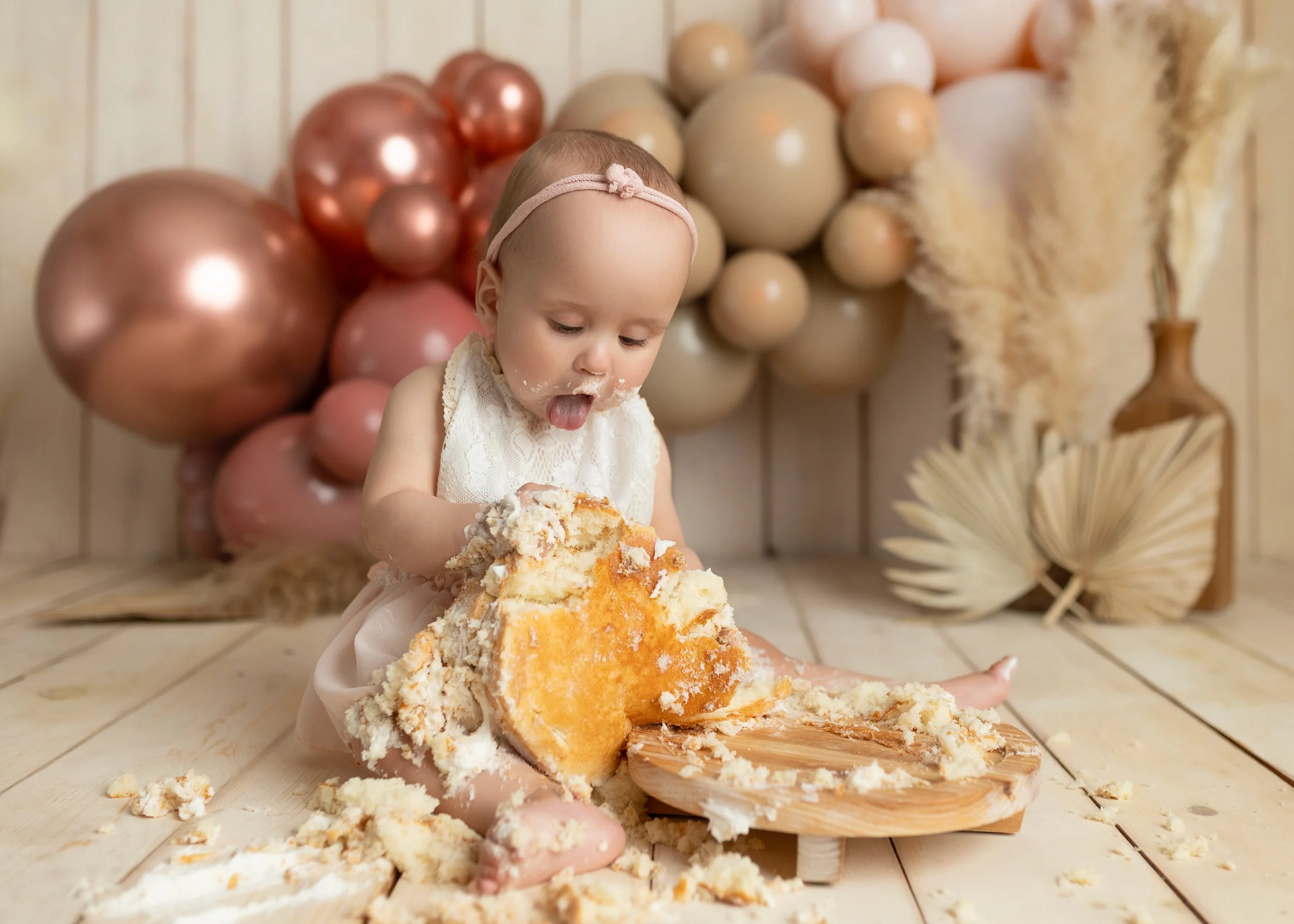 Cake smash photo sessions have become increasingly popular in recent years as a fun way to celebrate a baby's first birthday. These photo shoots typically involve a baby being presented with a cake to smash, resulting in adorable and often messy photos that make for great memories and keepsakes.
