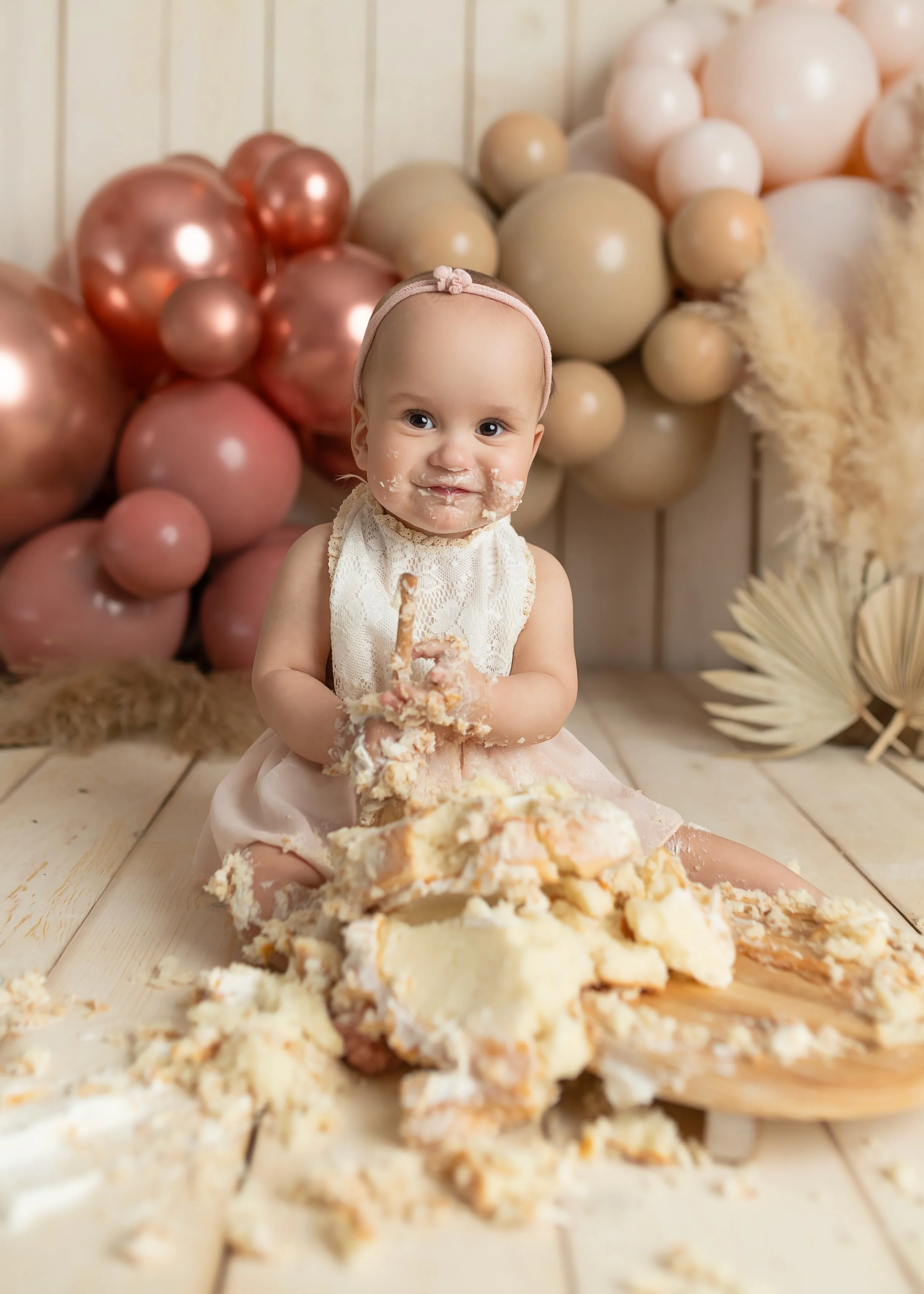 One of the main appeals of a cake smash photo session is the opportunity to capture a baby's personality and character. Babies are naturally curious and playful, and a cake smash provides the perfect opportunity for them to explore and express themselves. The resulting photos often show a baby's sense of wonder and joy as they discover and play with the cake.